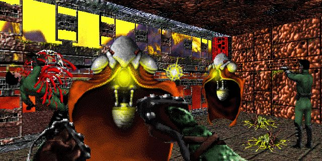 而且,《马拉松》每一代的进步都很明显:2代画面质量更好,增加了游泳的动作,游戏还首次跨平台登录Win95;《马拉松无限》关卡更多场景更大剧情更复杂,增加了面向玩家的关卡编辑器Forge和物理编辑器Anvil。