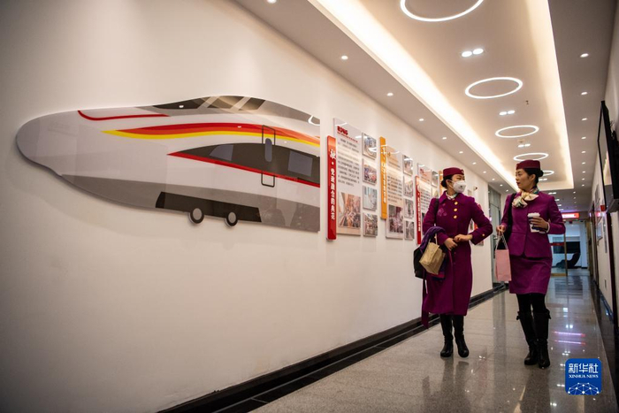 2月2日,在重庆北站,林梦凡在智能复兴号“共青团号”列车发车前做准备工作。