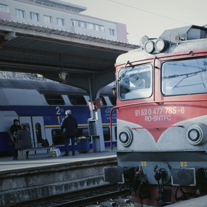 我决定坐火车去加拉茨。出发时外面刚下过雨,空气有些湿冷。我沿着大路中间向前走,搭乘44号电车去布加勒斯特火车北站。途中经过一所幼儿园,剥落铁锈的栅栏、湿乎乎淋过雨的滑梯和油漆褪色的秋千让人直面阴郁与破败。我问了路,找到了外表破旧的电车。电车静静地卧在铁道上,开车的人在等待行人乘车。开车的是头发花白的老人,他听不懂英语但却大概能猜到我要去火车站。最后,我在靠近站名为Bucureti Nord的地方下了车。火车站是露天的,露台和售票处连在一起,站台旁停着几只啄食的鸽子。陌生的年轻姑娘给予了我远超预期的帮助,她们告诉我如何买票去哪儿上车,并认真替我确认了火车停靠的站台。