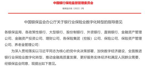 值得注意的是,1月17日,银保监会刚发布了《关于银行业保险业数字化转型的指导意见》(银保监办发[2022]2号,下称《指导意见》),数字化转型已上升为全行业战略。