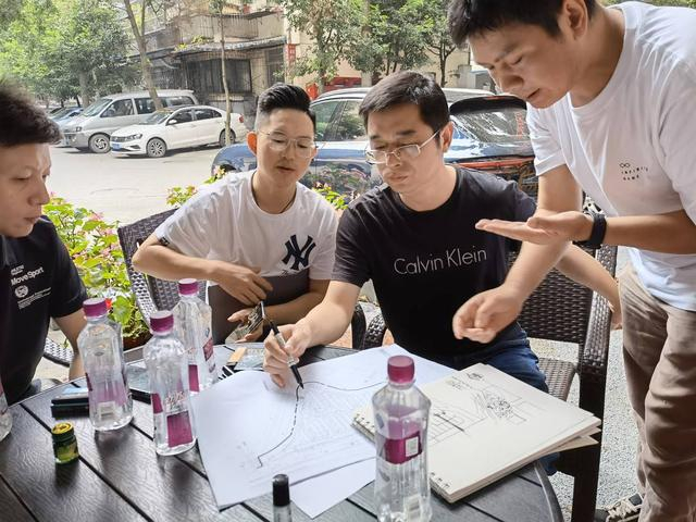 施工前对改造方向的调研与讨论 右二为贾刘强
