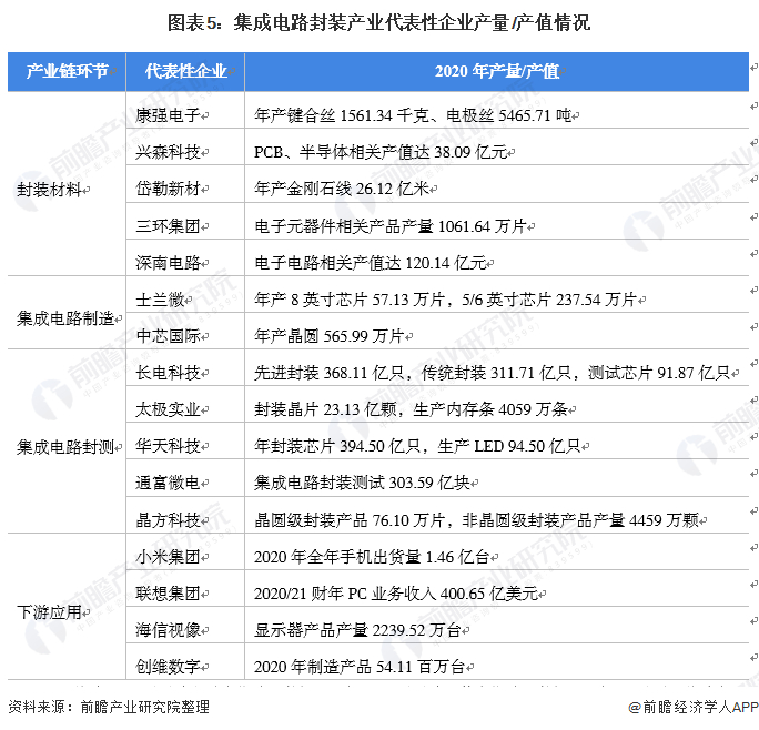 目前。集成电路封装产业产业链上的其它代表性企业产能/产量情况如下: