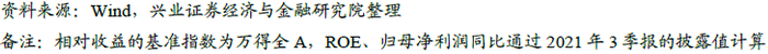 相较于2019、2020年,牛股业绩增速(g)的领先幅度大幅提高。2021年前三季度,百大牛股的归母净利润增速中位数为132.6%,而A股整体归母净利润增速中位数为20.4%,百大牛股的领先幅度达112.2%。而2019年,百大牛股归母净利润增速中位数、A股整体归母净利润增速中位数分别为57.0%、9.4%,百大牛股领先幅度为47.6%,低于2021年。2020年,百大牛股归母净利润增速中位数、A股整体归母净利润增速中位数分别为66.3%、10.8%,百大牛股领先幅度为55.5%,同样低于2021年。综合盈利能力和业绩增速来看,市场审美逐步从ROE转向业绩增速g,对高业绩增速(g)个股的偏好更加明显。
