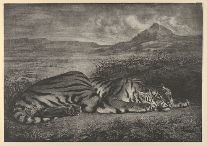 透过这些作品,可以看到德拉克洛瓦如何通过将野蛮或驯化的动物拟人,来展现人类的情感。例如,他曾写道,“人就像老虎和狼一样自相残杀。”他的朋友、法国诗人泰奥菲尔·戈蒂耶(Théophile Gautier)则在德拉克洛瓦自己和他所描绘的这些“大猫”之间发现了共同点:“他那黄褐色的眼睛,带着猫一样的表情,细长的嘴唇紧贴在华丽的牙齿外,结实的颧骨突出了他硬朗的下颌线条……使他的五官具有一种野性、奇异、异域的惊人之美。”