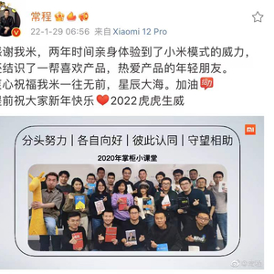 “感谢我米,两年时间亲身体验到了小米模式的威力,还结识了一帮喜欢产品,热爱产品的年轻朋友。衷心祝福我米一往无前,星辰大海。”这是小米集团前副总裁、手机产品部总经理常程离职后,在微博留下的一番感言。