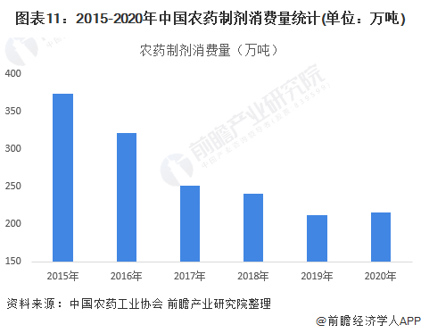 2015-2020年,中国农药制剂行业消费量逐年下降。2020年消费量达到215万吨,同比上涨约1.5%,与2019年基本持平,从一定程度上说明,中国农药制剂需求市场饱和,当前农药制剂产能以出口为主。中国农药工业协会的数据显示,中国作为农药出口大国,出口地区以亚洲和拉丁美洲为主。主要品种有草甘膦、百草枯、吡虫啉、烯草酮、百菌清、莠去津、甲氨基阿维菌素、氟虫腈、毒死蜱及阿维菌素等。