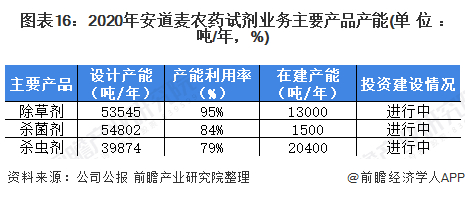 当前农药试剂行业发展较为成熟,由于国内市场趋于饱和,因此绝大部分产能用于出口,通过小型和大型公司销往海外市场。以当前业内领先企业安道麦为例,2020年安道麦精化农药业务主要产品产能利用率均达到79%及以上,其中除草剂产能利用率更是达到95%,公司的产能稳步且规模较大,业务成熟度高。
