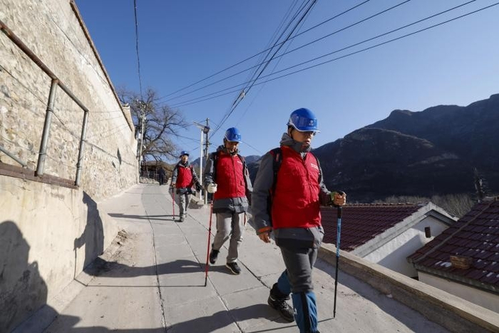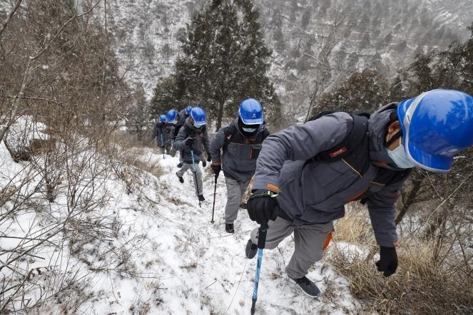 1月24日一早,雪后的北京寒风料峭、梨花满树,20余名队员前往位于门头沟山区的线路段踏勘。