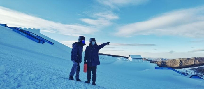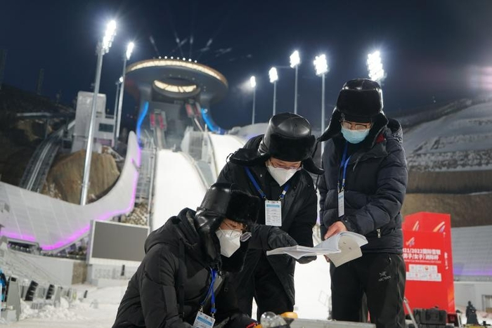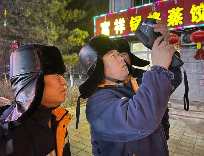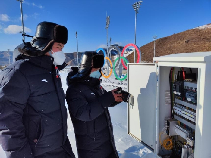 1月25日,廊坊电力冬奥保障团队孙勇旭、付连杰在国家越野滑雪中心进行设备巡视测温。