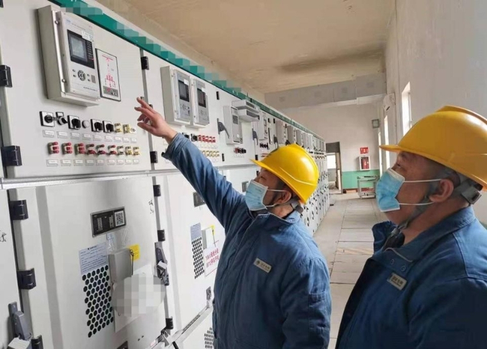 2022年1月31日国网新源公司十三陵电厂中控室值守人员刘彦樟、隗和俊在除夕夜保电值班。