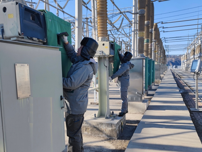 2月4日,冀北承德供电公司运维人员不畏严寒,对一二次设备增加例行、特殊、熄灯巡视和红外测温,确保设备安全稳定运行,为实现冬奥会供电保障万无一失贡献力量。(田野)
