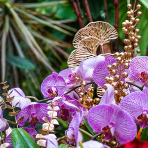 主要花材:蝴蝶兰、变叶木、圆盖阴石蕨