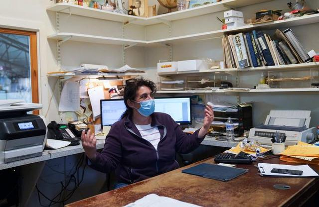 1月25日,在缅因州阿伦德尔镇的“龙虾公司”,负责人斯蒂芬妮·纳多接受采访。新华社记者王迎摄