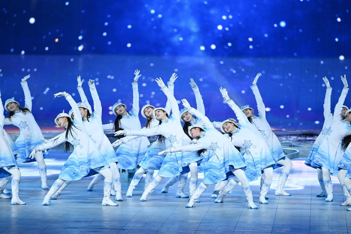 冰雪欢歌耀五环,“简约、安全、精彩”的冬奥会开幕式上,寓意冰雪的蓝、白两色,成了当仁不让的主角。蓝、白也成为服装造型方面的主打色。