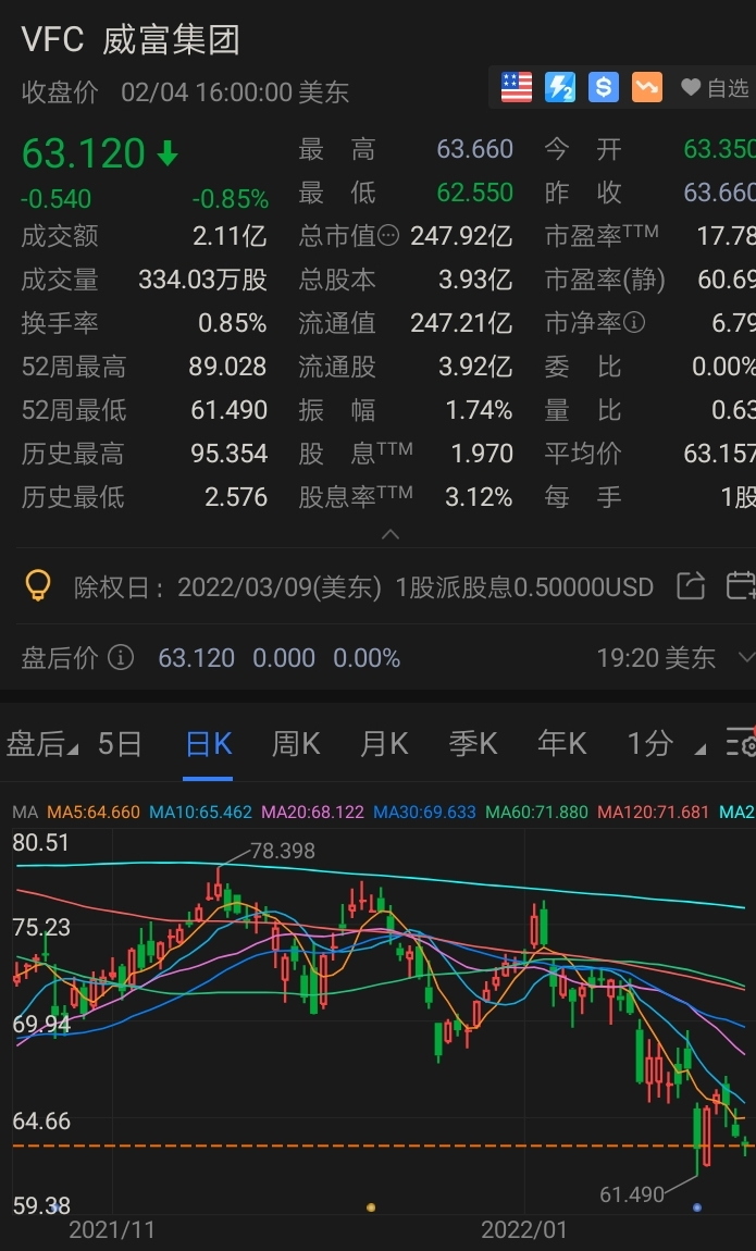 威富集团早在1969年就在纽交所上市,目前最新市值247.92亿美元,折合约1576.92亿元人民币。