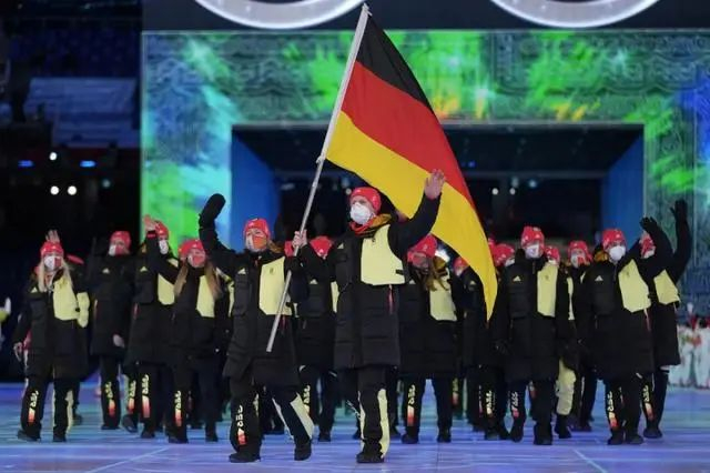 德国代表团身着知名本土运动品牌阿迪达斯服装。阿迪达斯(Adidas)创办于1949年,是德国运动用品制造商阿迪达斯AG成员公司。以其创办人阿道夫·阿迪·达斯勒(Adolf Adi Dassler)命名,1920年在黑措根奥拉赫开始生产鞋类产品。2018年12月,世界品牌实验室编制的《2018世界品牌500强》揭晓,阿迪达斯排名第49位。