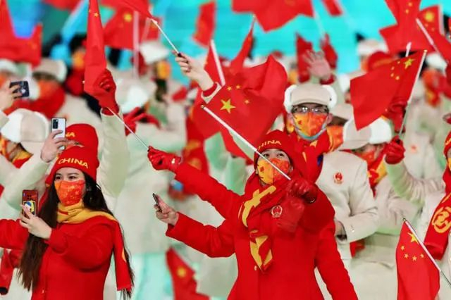 中国代表团的制服,这次没有采用往年的运动服款式,而是设计成了大衣的样式,搭配毡帽和国旗颜色的围巾,看着就特别暖和。大红的“战袍”更是喜庆极了,特别提气。