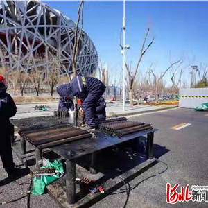 图为衡水市安平县河北圣姑烟花制造有限公司工作人员在安装调试北京2022年冬奥会开幕式高空特效烟花发射装置。 李亮供图