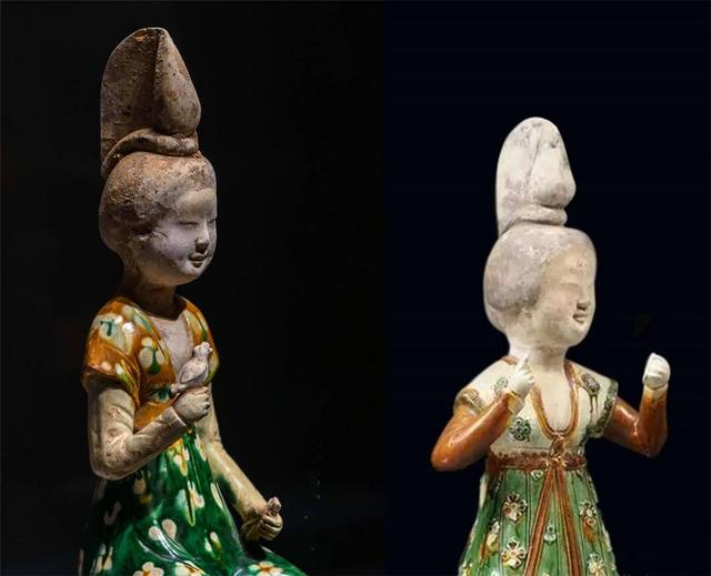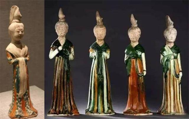 还有出土的唐三彩女俑,也有不少梳半翻髻的仕女。