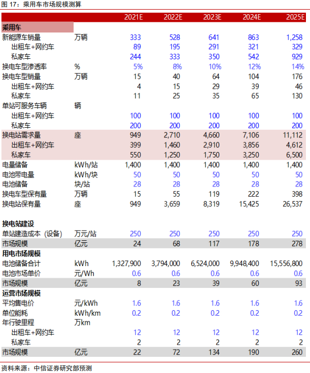 乘用车:2025年乘用车换电站设备市场规模有望达278亿元,用电市场规模有望达93亿元,运营市场规模有望达260亿元。