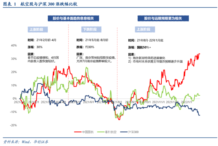 2021年后,航空股跑赢市场,可以分为两个鲜明的阶段: