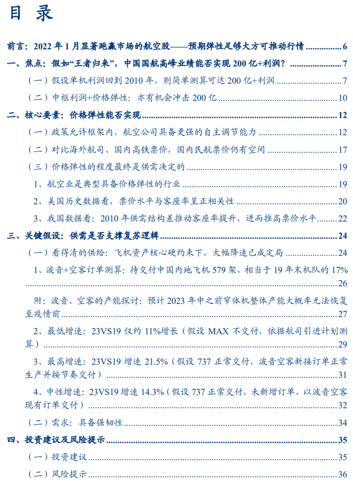 风险提示:疫情影响不确定性的风险,当前受疫情影响,行业客运量及客座率处于低位;价格弹性测算的前提及实现时间存在不确定性;油价大幅上升及人民币大幅贬值或对利润最终表现产生影响。