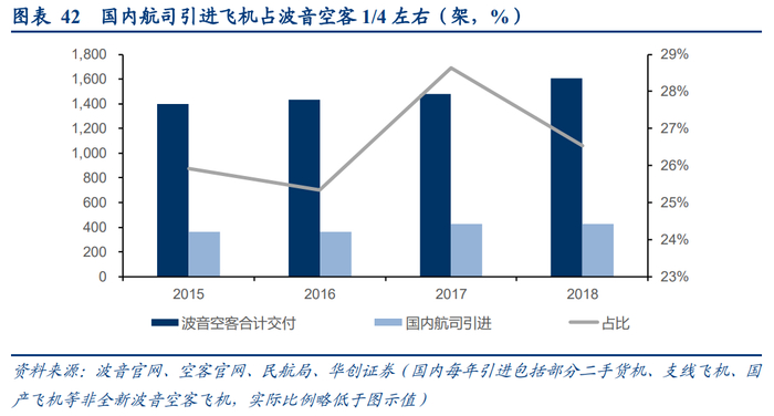 正常年份中国航司通常占波音空客交付量的1/4左右,对应约715架飞机(其中约650架窄体机)最终交付至中国航司,占2019年末全行业客运机队(不含支线机型)的20.7%。