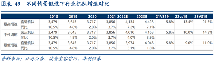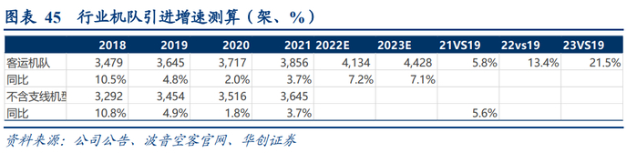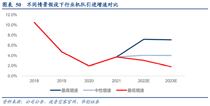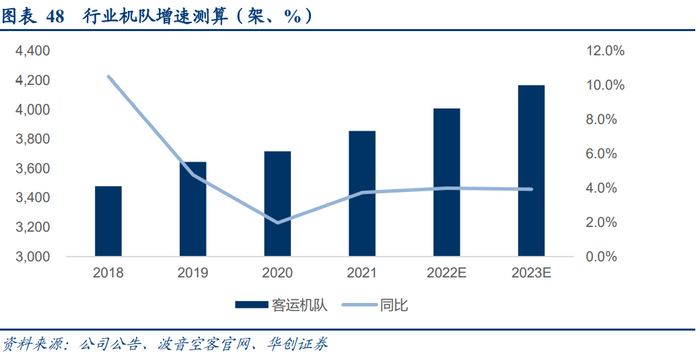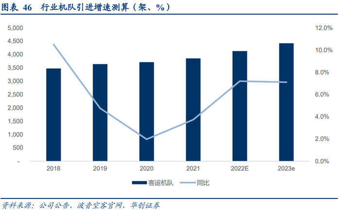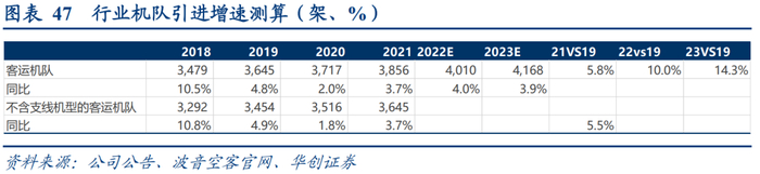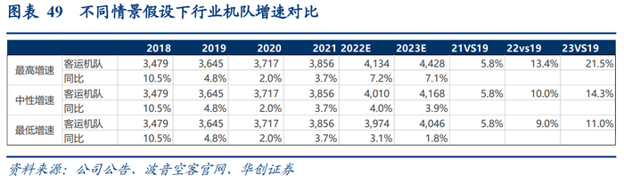 该增速的实现需要:737MAX在2023年前复飞、同时引进正常;波音空客产能按节奏恢复;航司新下订单或通过租赁公司等方式引进。