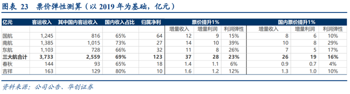 2)我们对价格弹性的测算为模拟,实际运营过程中,航空公司会综合各自航线资源、客户结构、竞争优势等多方面因素进行收益管理,不代表实际可达到测算水平。