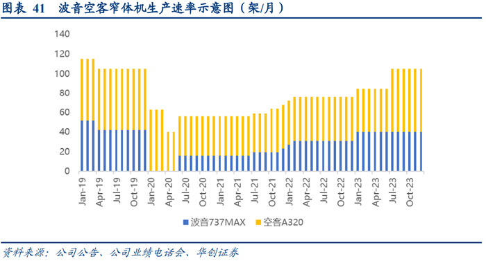 2020年受航司推迟交付及新增订单减少等影响,空客A320系列的月产能由63架降至40架。