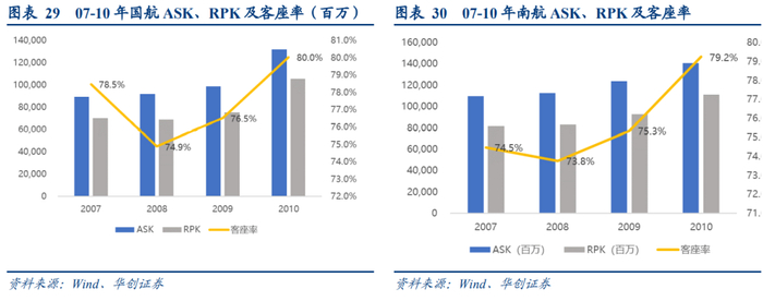 我们此前报告分析,2010年行业供需差达到5.8pts,南航、东航座公里收益同比增长超过20%。而根据我们的测算,行业供给在2019-2023 处于低速状态,若后续疫情影响削弱,需求正常释放,一旦出现快速反弹时,供需差有概率达到较高水平,叠加票价市场化放开作用,有一定概率将收入推高至10年水平。