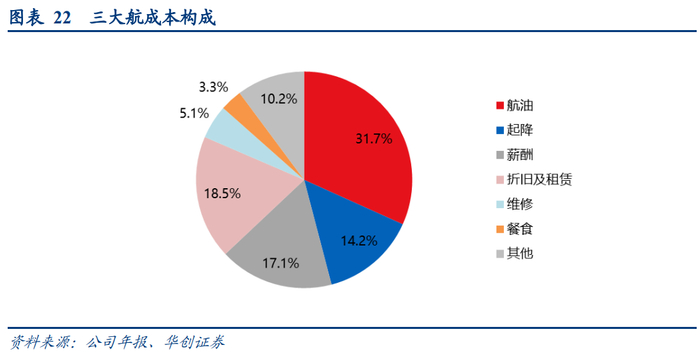 航油成本是航空公司成本项占比最高的项目,通常约在成本比重的25%-30%;