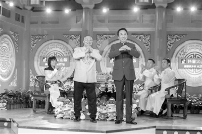 王振华告诉记者,今年和往年一样,在确定“直播带货辽宁美食”的主题后,他和创作团队收集素材并赶赴北京与冯巩一起研究本子、排练。1月10日,冯巩、闫学晶提前来到沈阳,走进沈阳相声小剧场连演三场,提前给观众表演,检验效果,“在小剧场演出的时候,冯巩老师就真吃道具,力求把真情实感传递给观众,敬业精神令人敬佩。”王振华表示,三场演出结束回到酒店后,冯巩马上领着大家根据演出效果打磨剧本,“大家都知道冯巩老师是一个对艺术特别严谨的人,我们根据演出效果反复修改本子,调整到凌晨三点多,力求精益求精。”王振华称,到了辽视春晚彩排录制的时候,按照导演组的意思,酸菜、大蒜咬一口就行,为了呈现更好的舞台效果,冯巩最后实录的时候将独头蒜全放在口中,节目效果达到顶峰,观众掌声不断,笑声不停。