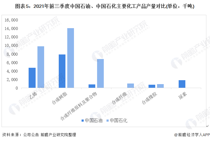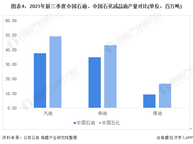 3、石油化工业务产量对比:中国石化成品油与化工产品产量更高