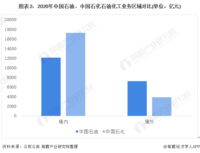 2、石油化工业务区域布局及运营现状对比:境内市场中石化营收更高