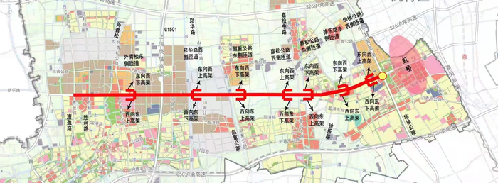 据悉,崧泽高架西延伸工程为上海市重大工程,总体长度约18.06km,红线宽度50m。西起漕盈路,东至崧泽高架路G15立交以东收费站。(其中高架段西起胜利路)总投资约98亿元。