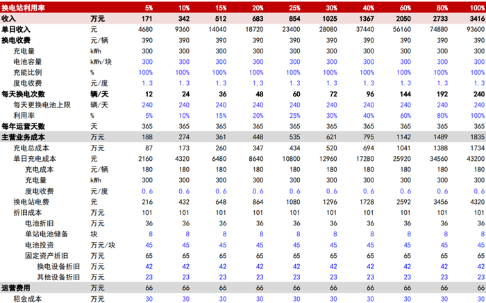 本节单站盈利测算,分别以单个乘用车换电站、单个重卡车换电站为模型进行计算。