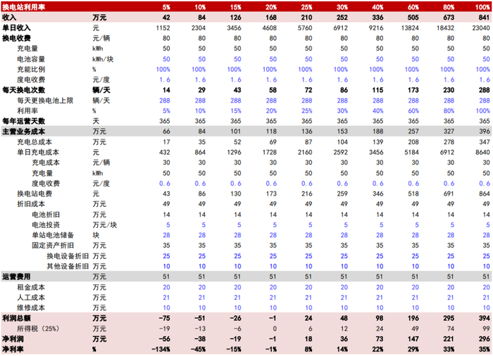 单站盈利测算:换电站运营进入正轨,盈利模式成熟可行。