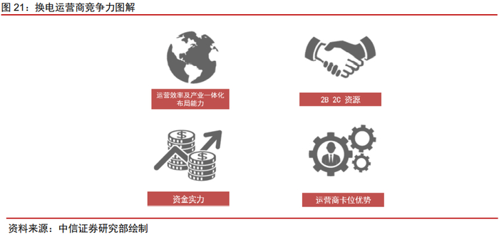 这部分我们从重点两个环节来探讨行业竞争力:1)换电运营商;2)换电设备供应商。