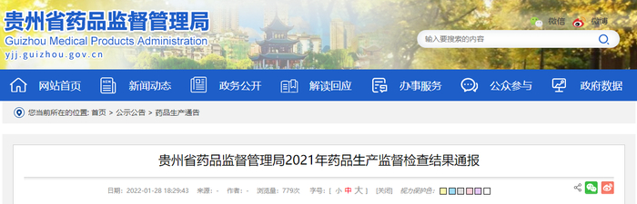 贵州省药品监督管理局通报2021年药品生产监督检查结果