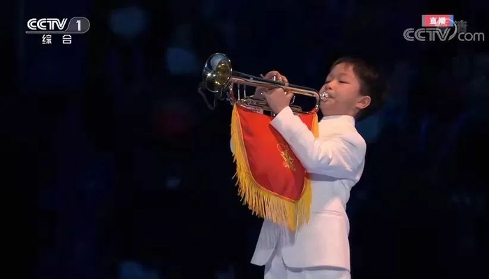 “那个时候我特别激动!”电话那头,9岁的朱德恩小朋友兴奋起来,因为补觉而起晚了的一点迷糊一扫而光。他再次想起那个难忘的时刻:2月4日晚,北京2022年冬奥会开幕式上,当各行各业的代表们把国旗手手相传时,他站在旗杆下,用小号吹响了《我和我的祖国》。深情嘹亮的号声回响在鸟巢里,现场和电视前无数观众一下子湿了眼眶,很多网友留言,那是当晚最被触动的时刻。
