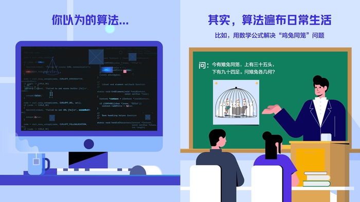小学时用数学公式解决“鸡兔同笼”问题,就运用了算法思维。