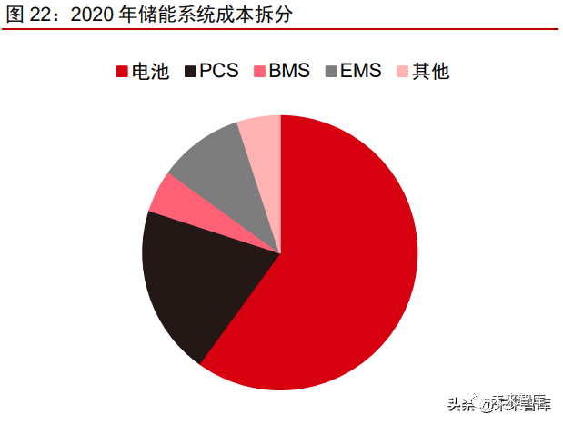 储能系统是以电池为核心的综合能源控制系统。储能系统主要包括电池组、双向变流 器(PCS)、能量管理系统(EMS)、电池管理系统(BMS)及其他电气设备等多个部件构 成,其中电池组是储能系统的核心,主要包括磷酸铁锂和三元电池;PCS 可以控制储能电 池组的充电和放电过程,进行交直流的变换;EMS 负责数据采集、网络监控和能量调度等;BMS 主要负责电池的监测、评估、保护及均衡等。电化学储能发展潜力巨大,各领域龙头 都纷纷提前布局储能赛道不同环节。