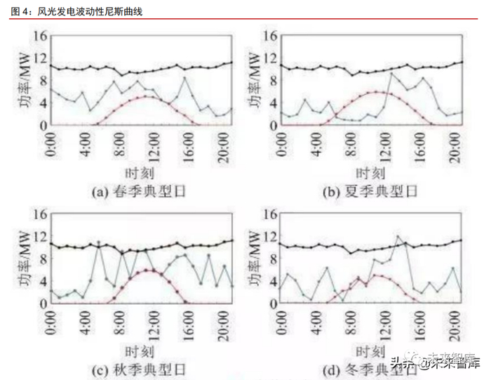 风电、光伏等新能源电源具备波动性和间歇性的发电特点,未来立足“双碳”目标的 实现和打造以新能源为主体的新型电力系统,则必然面临新增发电能力和电源装机结构向 不稳定的新能源持续切换的过程。在此过程中,新能源电源配套储能源建设,是可以有效 解决弃风弃光和电源侧稳定可靠性的重要路径。在此基础上,以一定功率比例配套储能, 并据相当备电时长满足平滑新能源电源出力曲线的目的,可以有效提升新能源对下游负荷 曲线变化的响应能力。