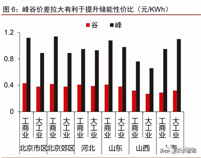 成本下降推动储能行业发展,电价体系促使储能盈利能力改善。近些年来,储能电池 成本不断下降,叠加电价机制逐渐灵活,商业模式逐渐成型。2010-2020 年,锂电池组价 格稳定下降,10 年间 CAGR 为-19.4%,有效扩大了储能电池的市场应用,推动储能行业 发展。此外,近年来电价改革引起峰谷价差拉大,为储能电池创造了套利空间。用户侧峰 谷电价差拉大,最大系统峰谷差率超过 40%的地方,峰谷电价价差原则上不低于 4:1,其 他地方原则上不低于 3:1。电价改革推动了制度的建设,进一步刺激了对储能电池的需求, 改善了储能系统的盈利能力。(报告来源:未来智库)