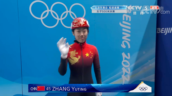 在短道速滑女子500米决赛中,首次踏上冬奥赛场的中国选手张雨婷获得第四名!