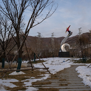 从北京往西北方向车行约250公里,驶进崇礼北收费站,不到5分钟,门店招牌、霓虹灯牌的字样或形状就会以最直白的方式告知来客“已抵达冰雪目的地”——仅在“魅力崇礼”单板雕塑所在小广场上原地转一圈,饭馆、宾馆、雪具店、运动康复诊所以及房产中介,名字里带“雪”字就近20家,甚至多家酒店的地毯花纹或壁纸也是雪花。