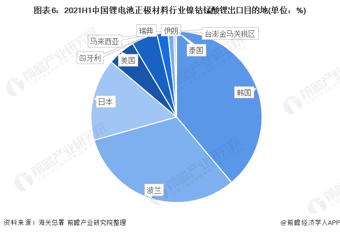 ——主要出口目的地:韩国及波兰我国三元正极材料的主要出口目的地