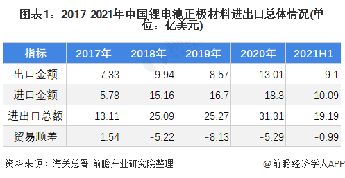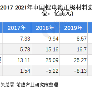 正极材料进出口总述:锂电池正极材料长期处于贸易逆差状态