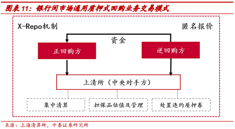 在颁布新规之后,银行间市场的质押式回购业务迈入了标准化、通用化的新阶段,上清所成为了各机构开展债券质押式回购交易的中央对手方。此后,业务参与者通过X-Repo进行匿名报价,达成交易,交易中心进行交易控制与交易额度管理,在结算的全流程中均由上清所进行清算与担保品管理,上清所因此承担了所有的交易对手风险,大大提高了银行间市场债券回购交易的便利性。